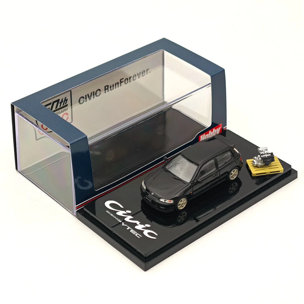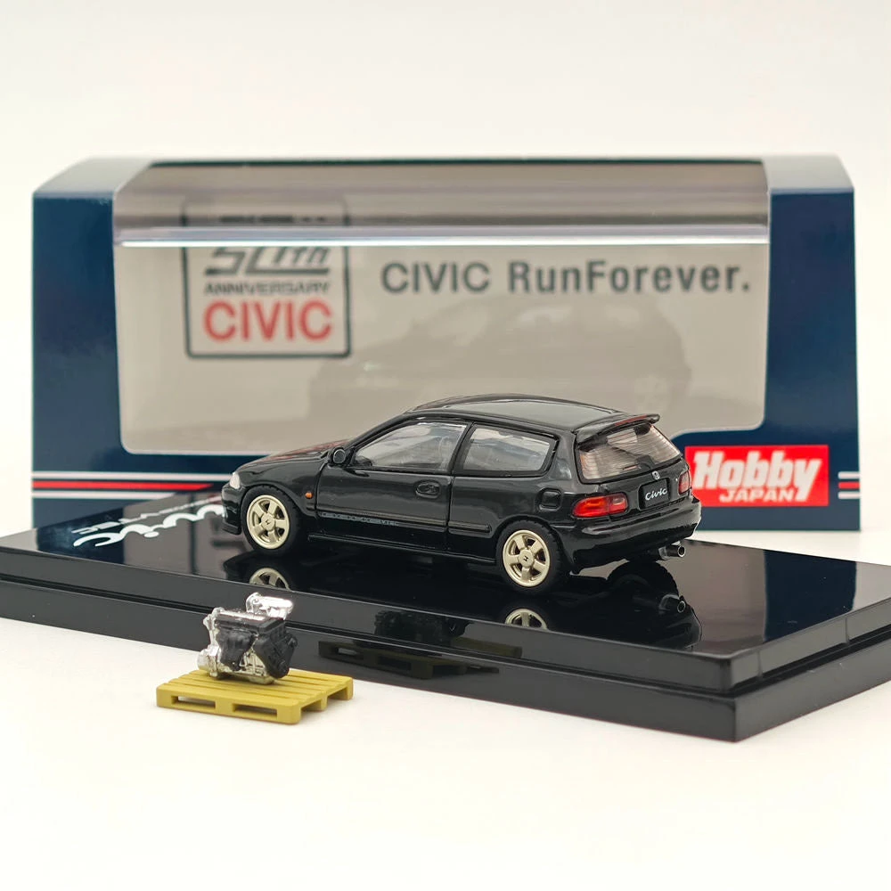 Hobby Japan 1/64 Honda CIVIC (EG6) Sir-S With Engine Display Model Granada Black(P) HJ641017SBK Diecast Models Car Collection