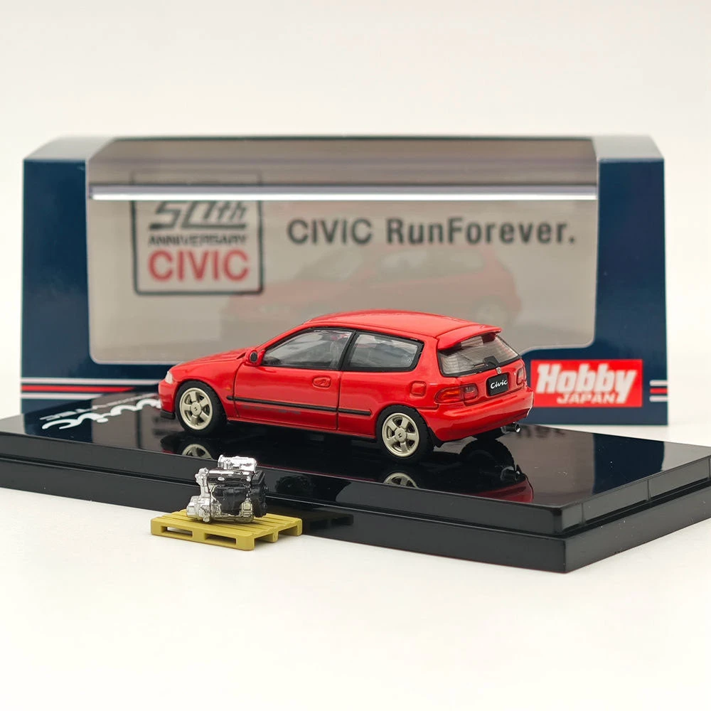 Hobby Japan 1/64 Honda CIVIC (EG6) Sir-S With Engine Display Model Milano Red HJ641017SR Diecast Models Car Collection